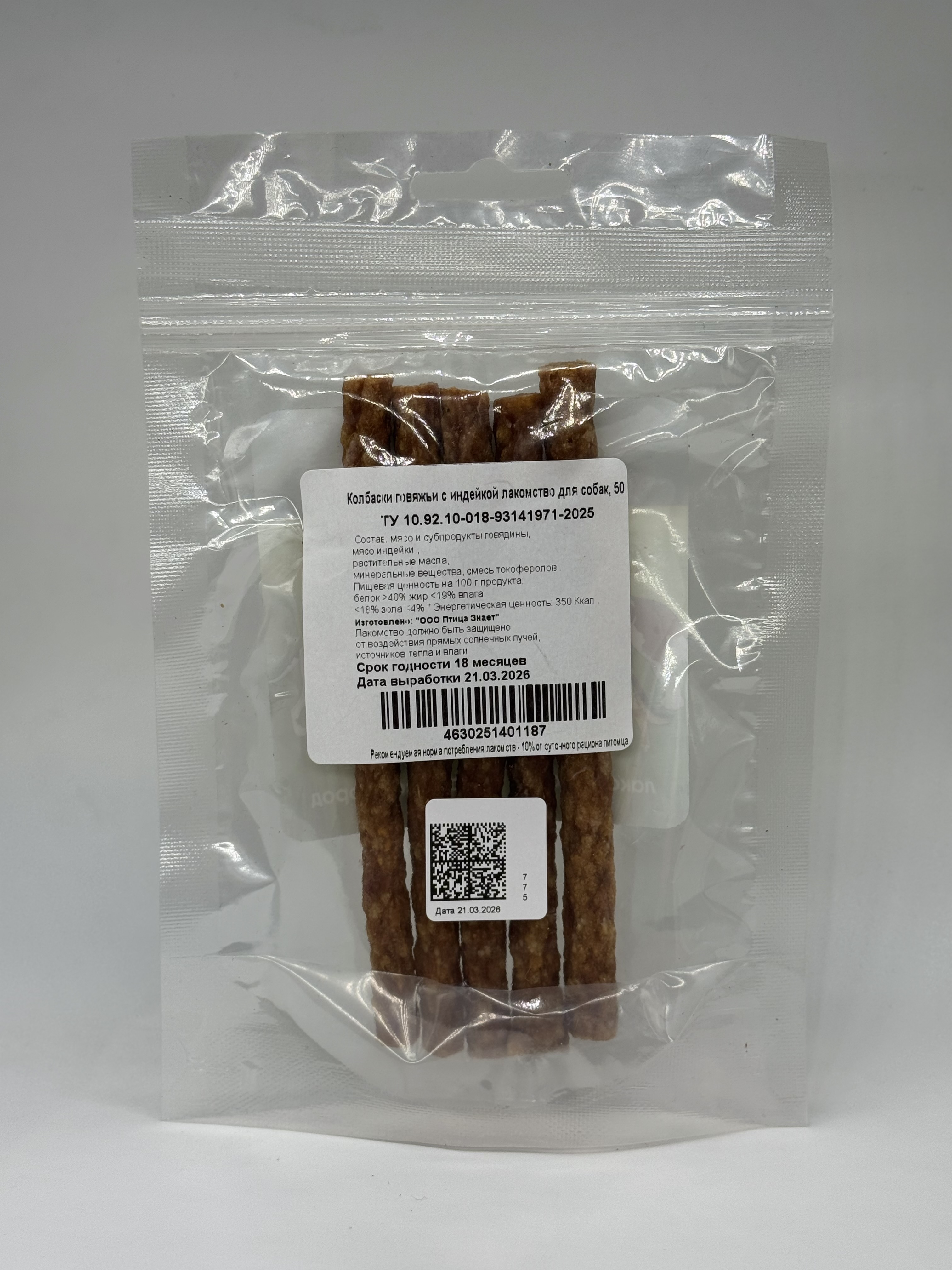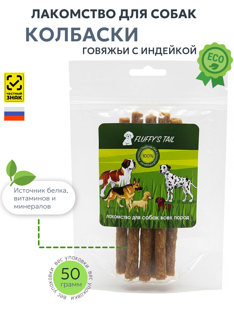 Колбаски лакомства для собак 50 гр, из индейки, говядина