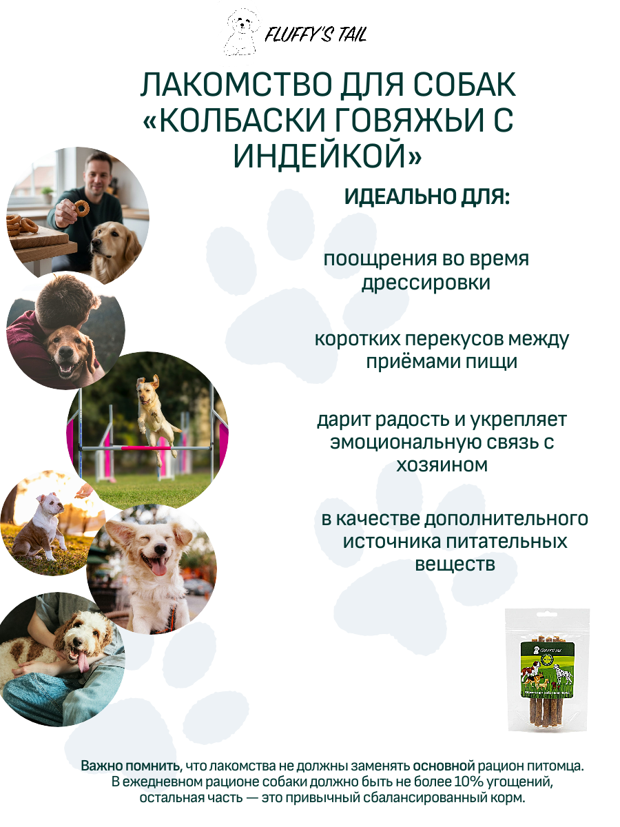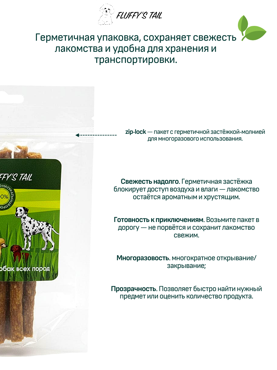Лакомства для собак от Fluffy’s Tail — это натуральные угощения, которые сочетают вкус и пользу для питомца. Они изготовлены из качественных ингредиентов, не содержат искусственных добавок и подходят для собак разных возрастов и размеров