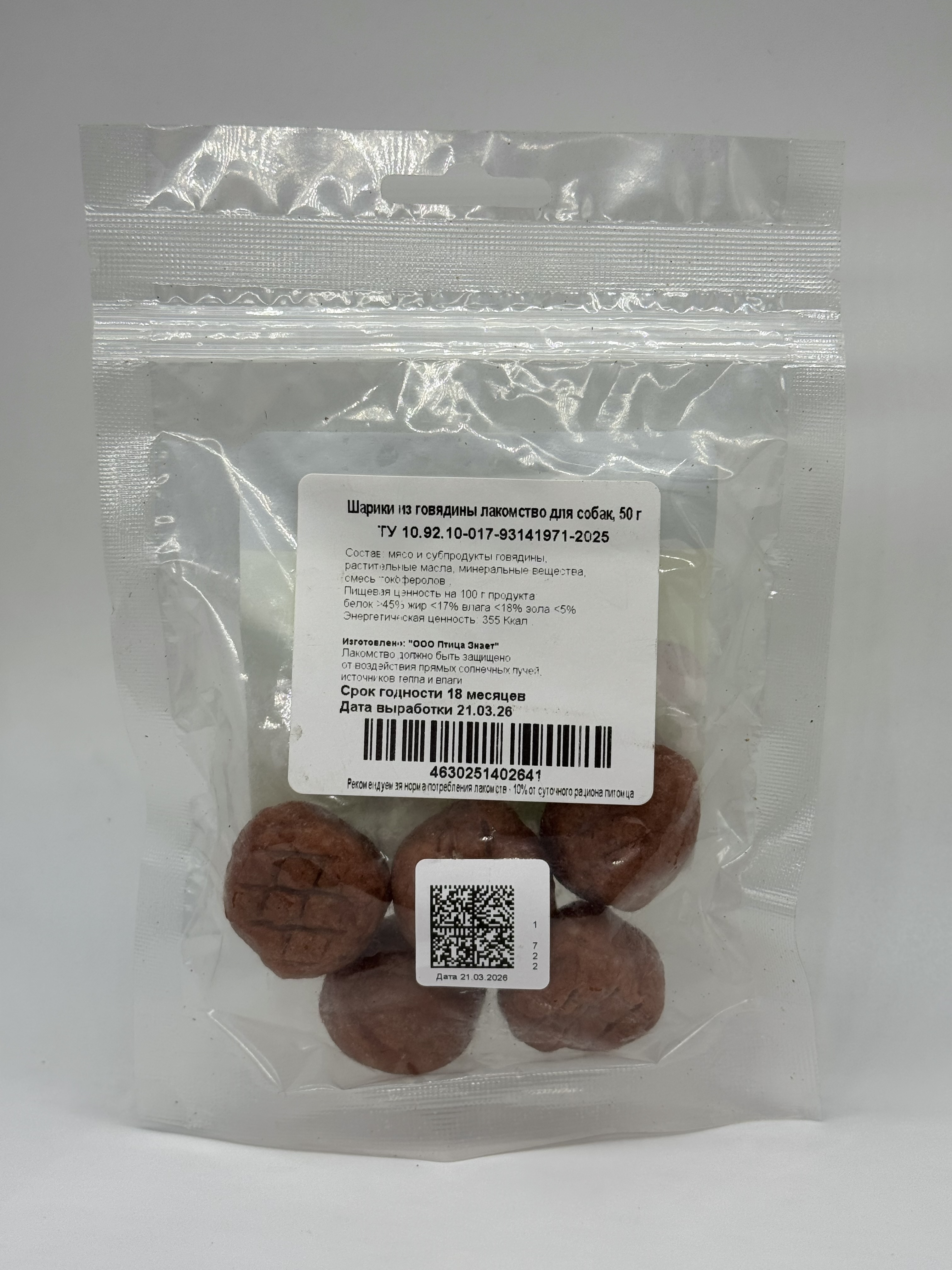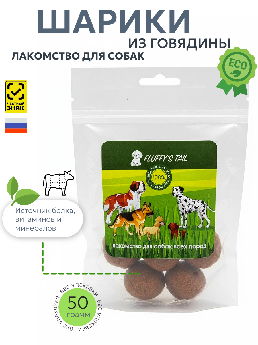 Лакомство для собак шарики 50 гр, из говядины