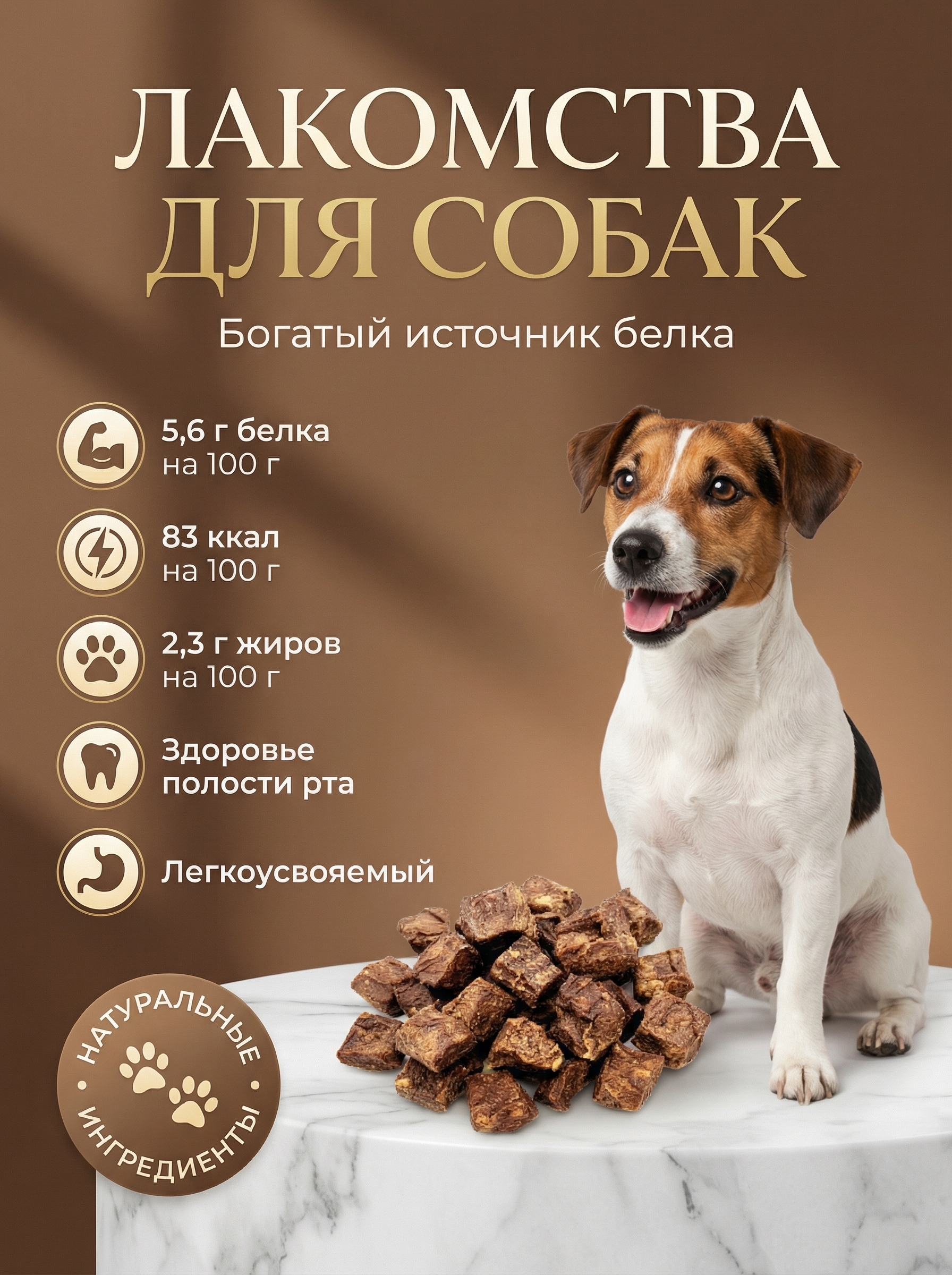 Лакомства для собак от Fluffy’s Tail — это натуральные угощения, которые сочетают вкус и пользу для питомца. Они изготовлены из качественных ингредиентов, не содержат искусственных добавок и подходят для собак разных возрастов и размеров