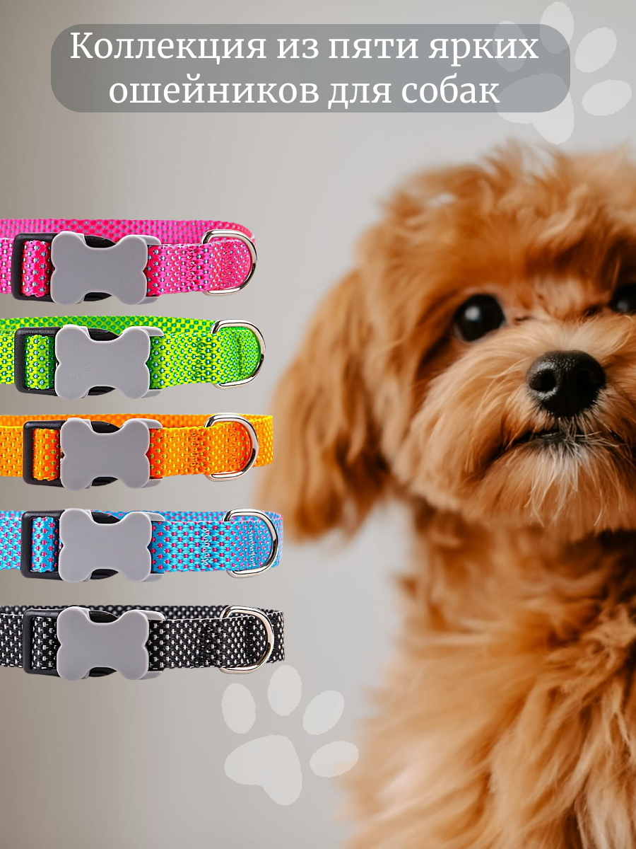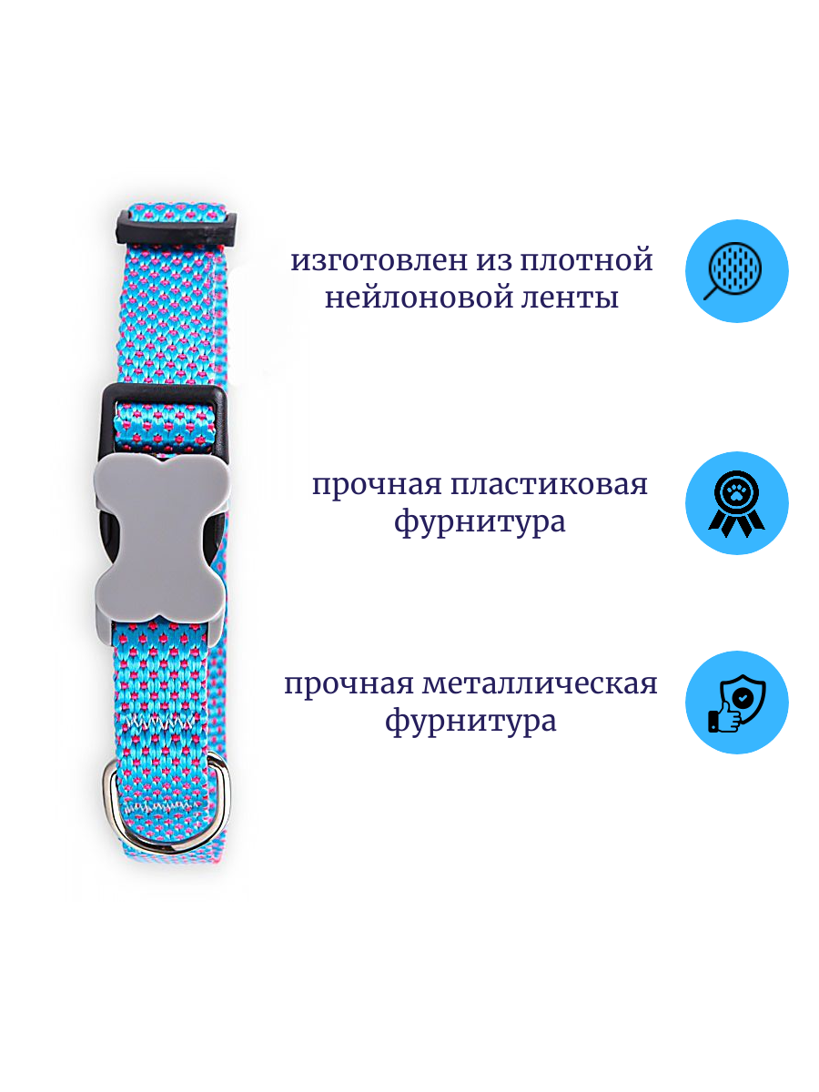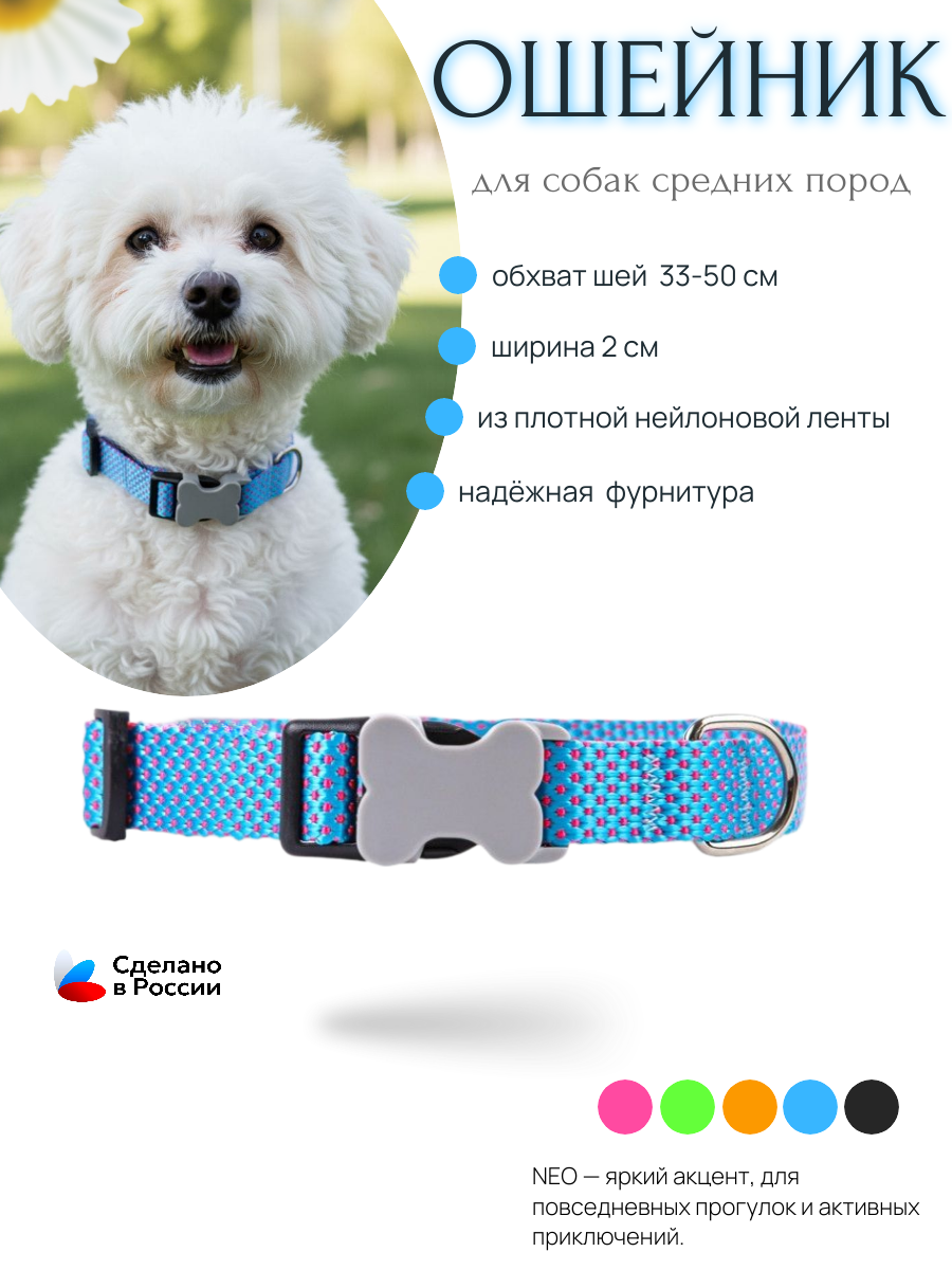Ошейник для собак регулируемый средних пород голубой, розовый неон