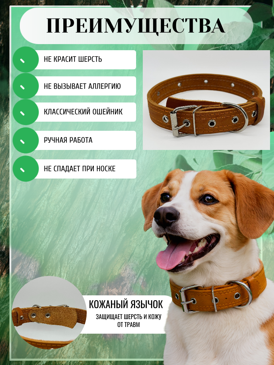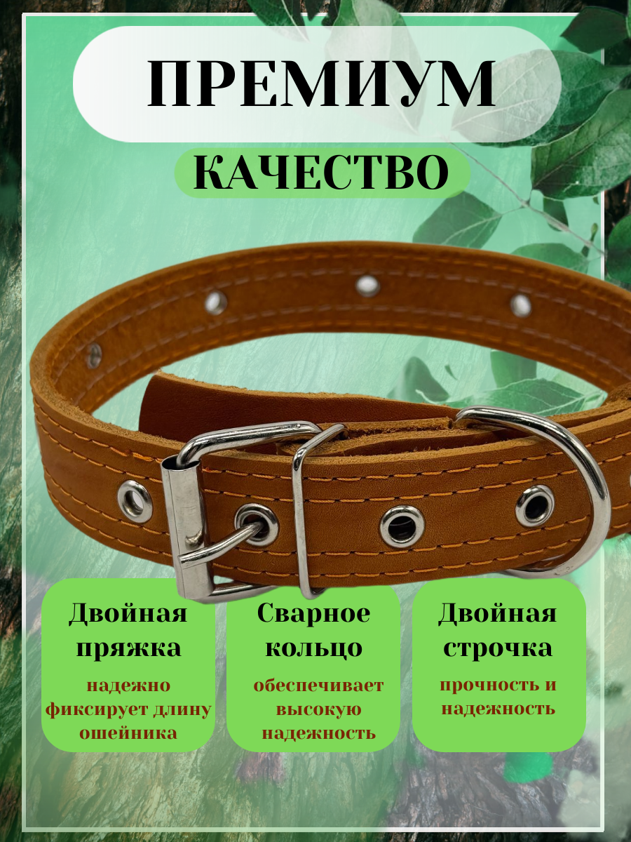 Ошейник для собак средних и крупных пород, кожаный оранжевый