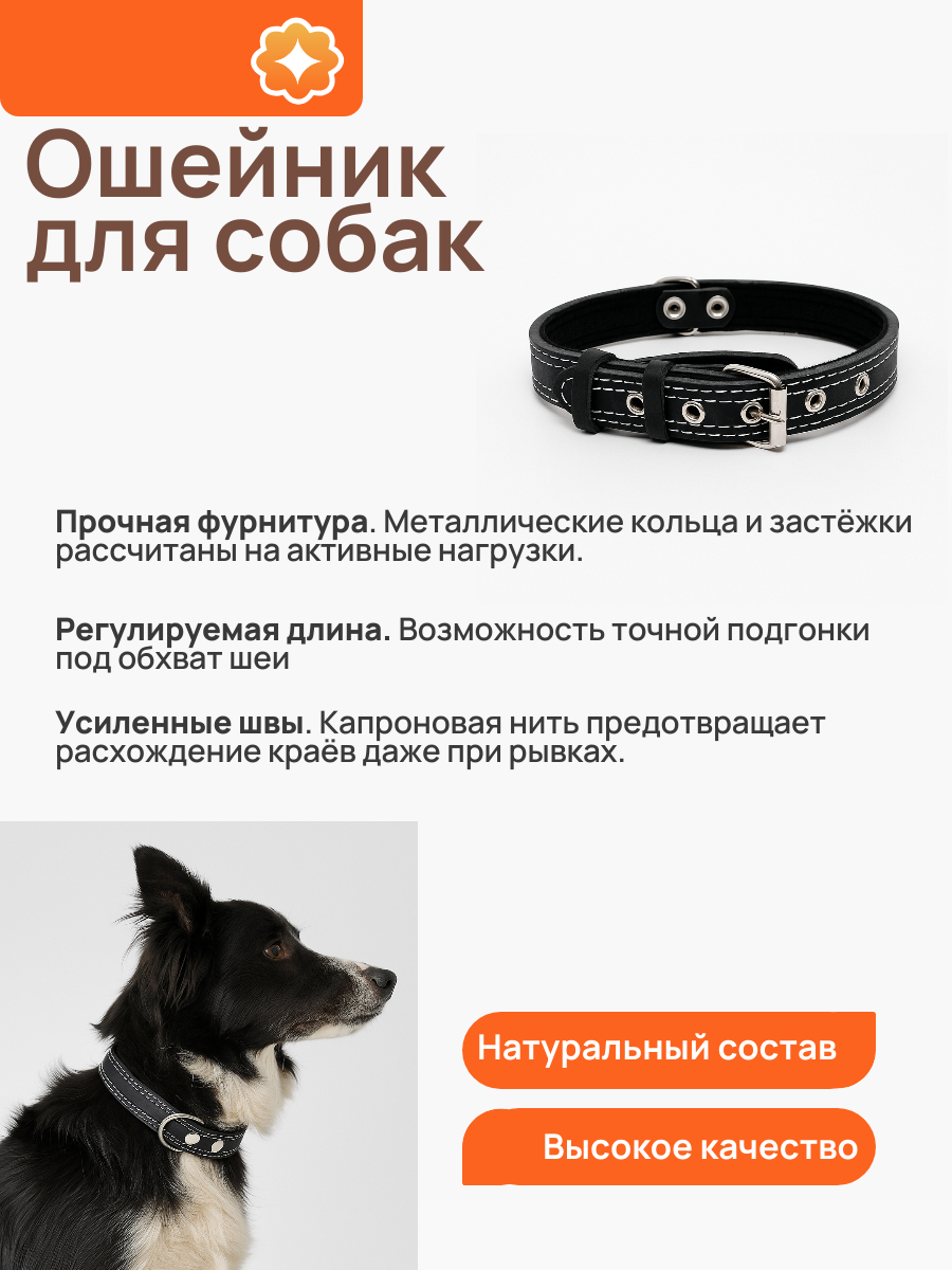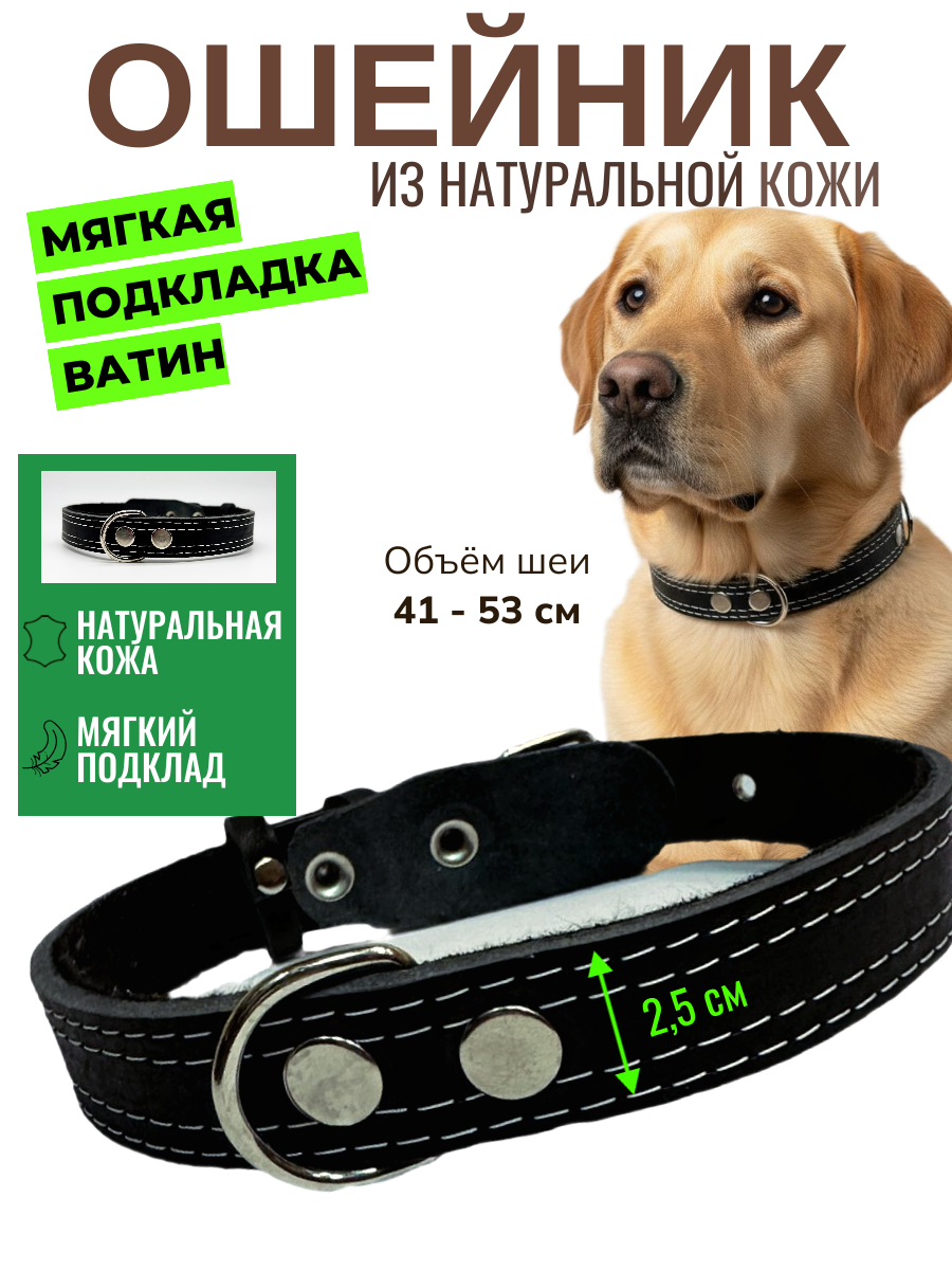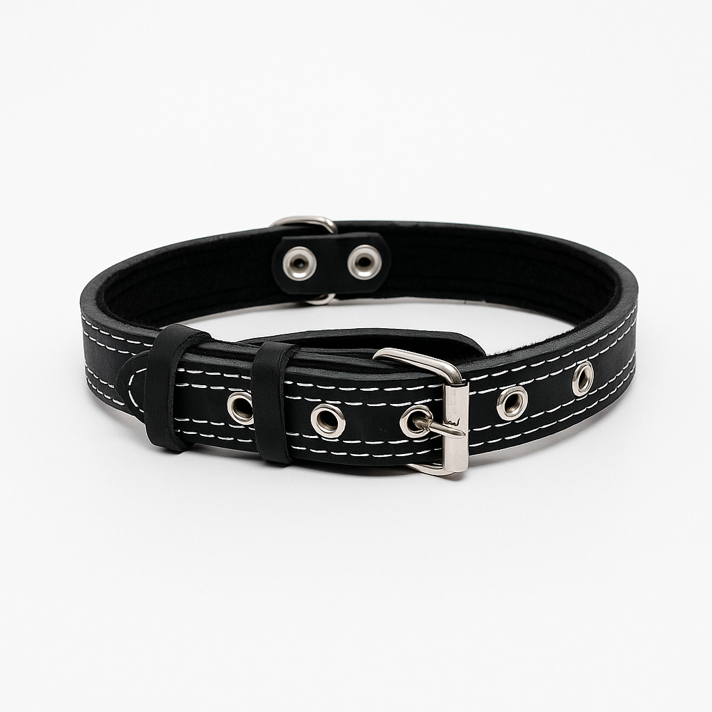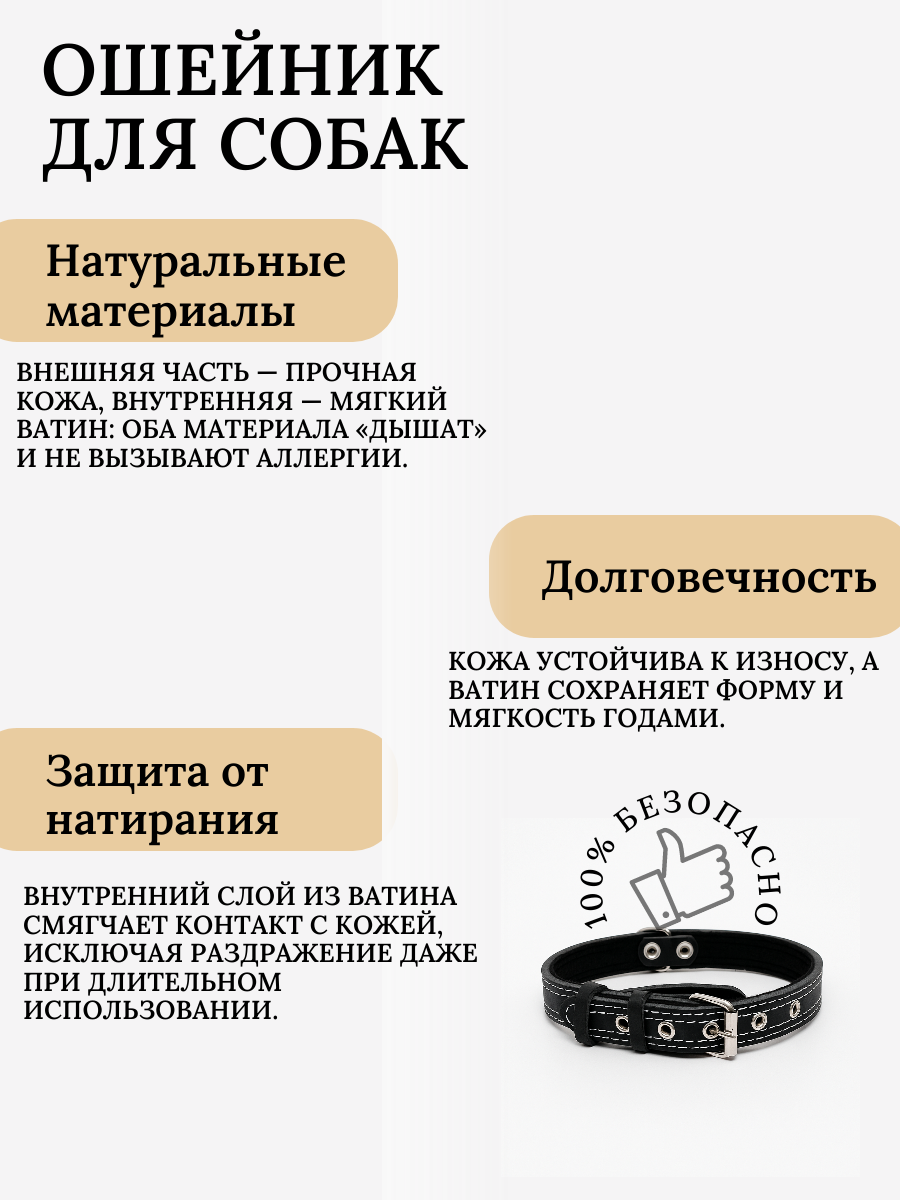 Ошейник кожаный для собак средних пород регулируемый черный