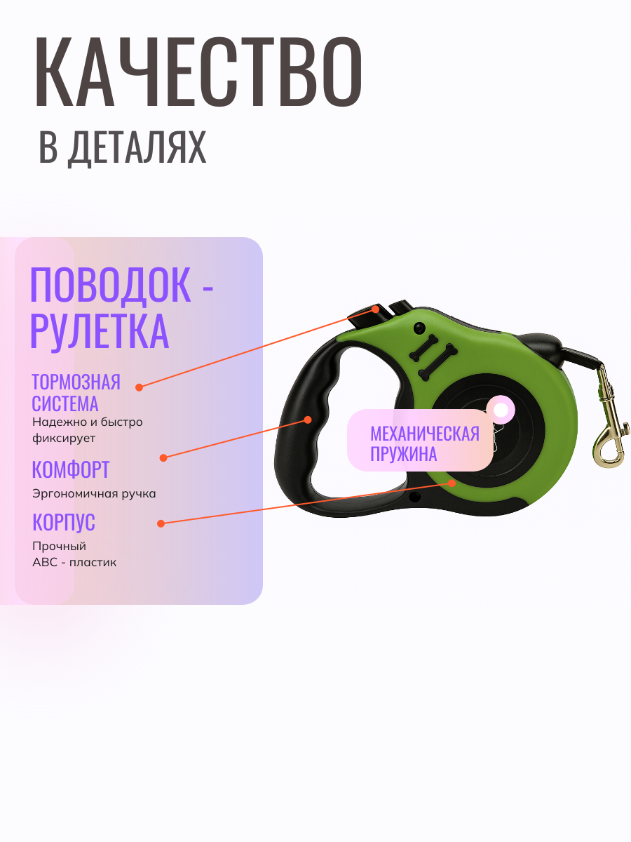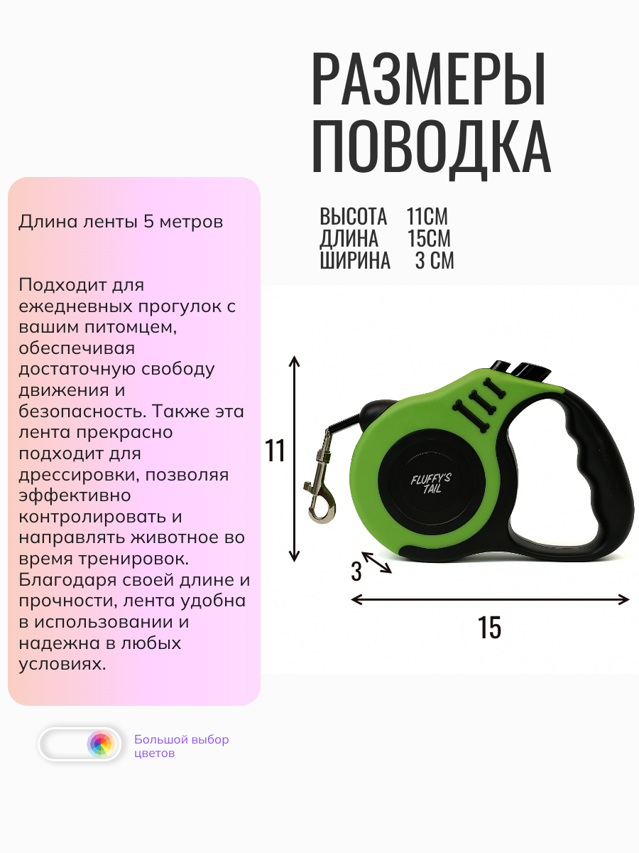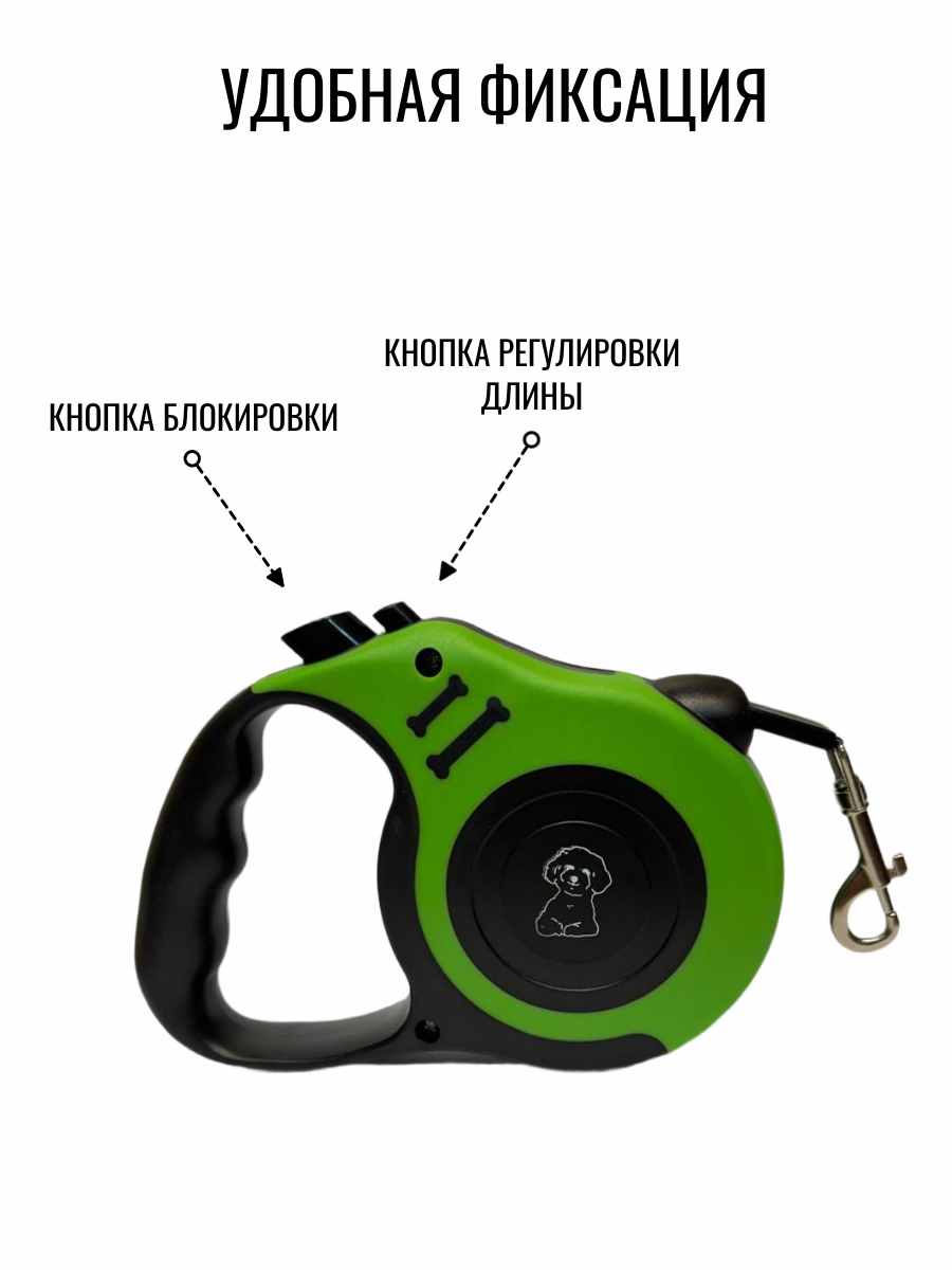 Поводок для собак мелких пород 5 м рулетка салатовый, черный