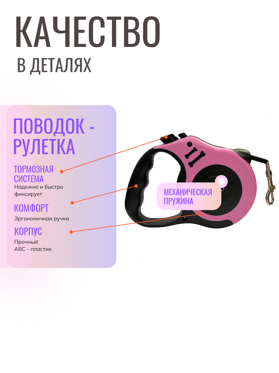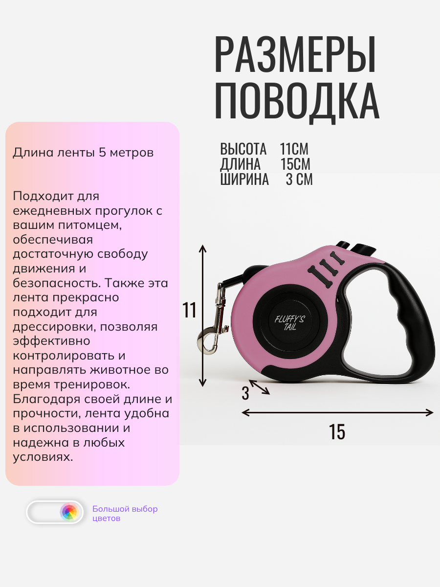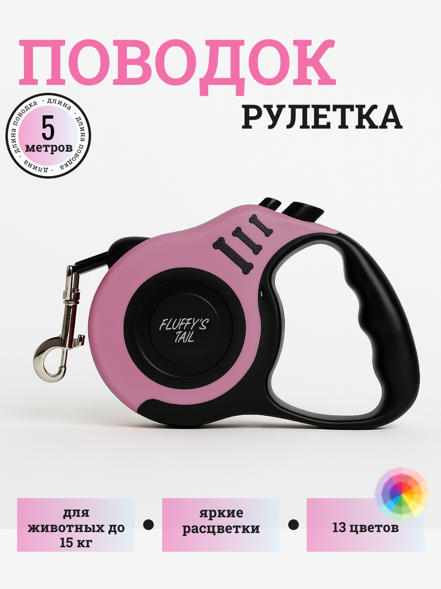 Поводок рулетка для собак 5 м лента розовый,черный
