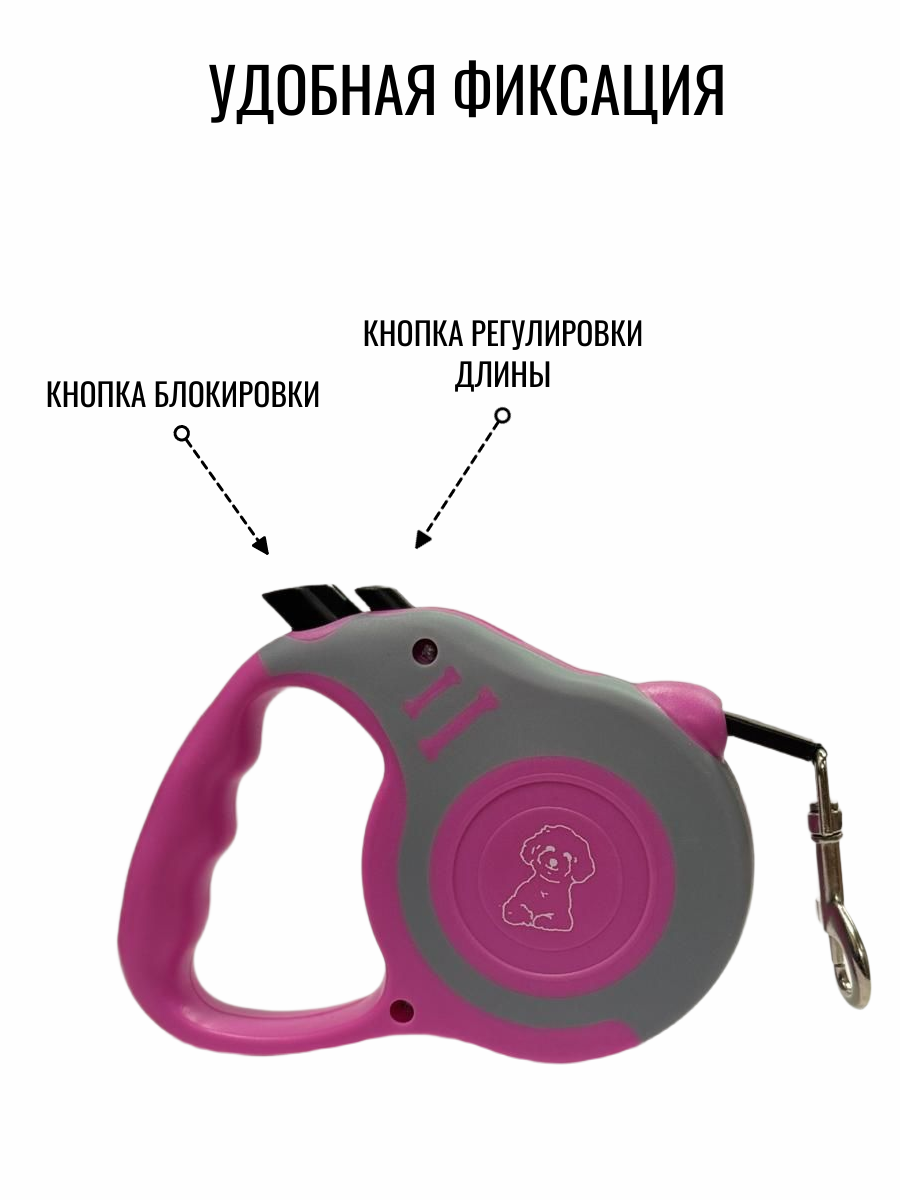 Поводок рулетка для собаки мелких пород 3 м ярко-розовый